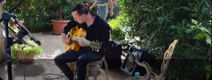 Originaire de sud de la france, je m’oriente rapidement vers le metier de musicien en tant que guitariste et monte le projet musical jazz manouche “Ensemble Belleville” crée maintenant depuis plus d’une 20ène d’années, cette formation a pu se faire remarquer dans de nombreux festivals et scènes française.Plus récement d’autres groupes ont vu le jour comme le duo sax guitare “Double sound” ou le groupe à composition fusion “Synaps”Durant mon parcours artistique j’ai pu aussi réaliser des compositions dans le style lounge qui ont été diffusées par des productions, (Sacem).